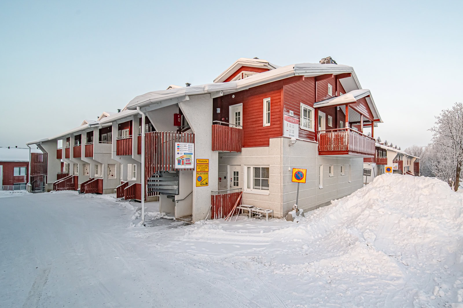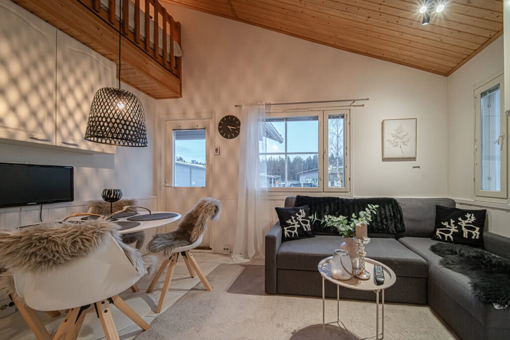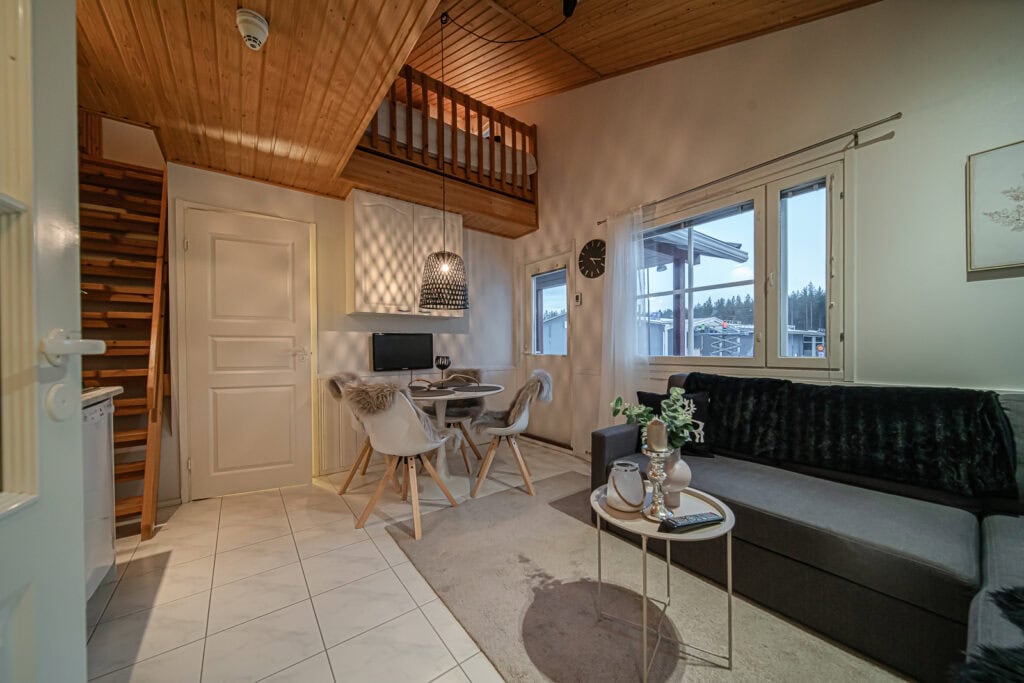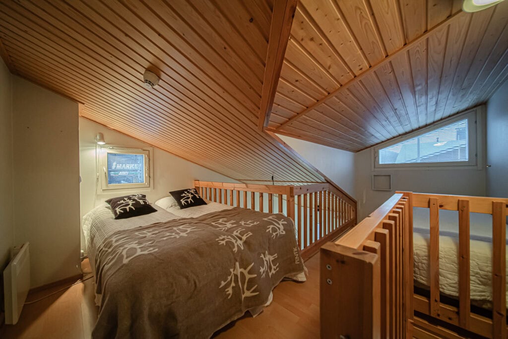 Lomahuoneisto Levin keskustassa neljälle hengelle. Asunnossa keittiö ja ruokailuvälineet, oleskelu- ja ruokailutila, kylpyhuone, wc ja sauna. Pyykinpesukone ja vaatteidenkuivauskaappi. Parvella sängyt kolmelle. Alakerrassa vuodesohva. Asuntoon kuuluu lämmin parkkihalli paikka. Tilava parveke